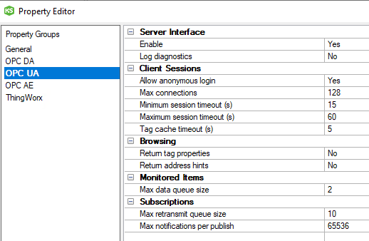 B. Allowing Anonymous Clients: Even if we lower the firewall, Kepware still expects a “Username/Password” from the incoming connection. For our Python code to enter without credentials, we navigated to Project Properties -> OPC UA tab and set the “Allow anonymous login” option to “Yes”.