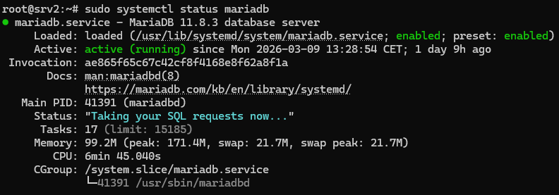 - SRV2: Our main server where we installed our web services (Apache2, PHP, MariaDB, Nextcloud).