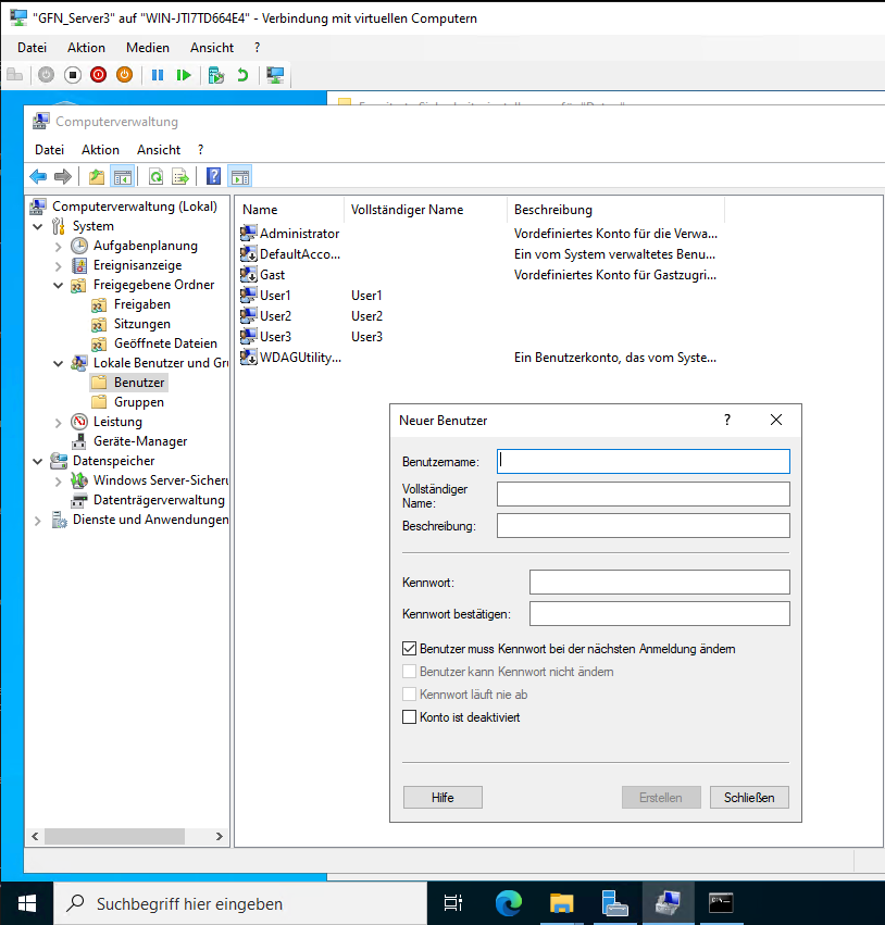 • Inside C:\Freigaben\, create three folders: Daten, Tools, and Backup.